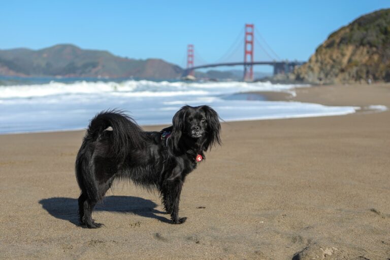 Watch for environmental hazards. Hot sand, sharp shells, strong currents, and occasional harmful algal blooms can pose risks to pets.